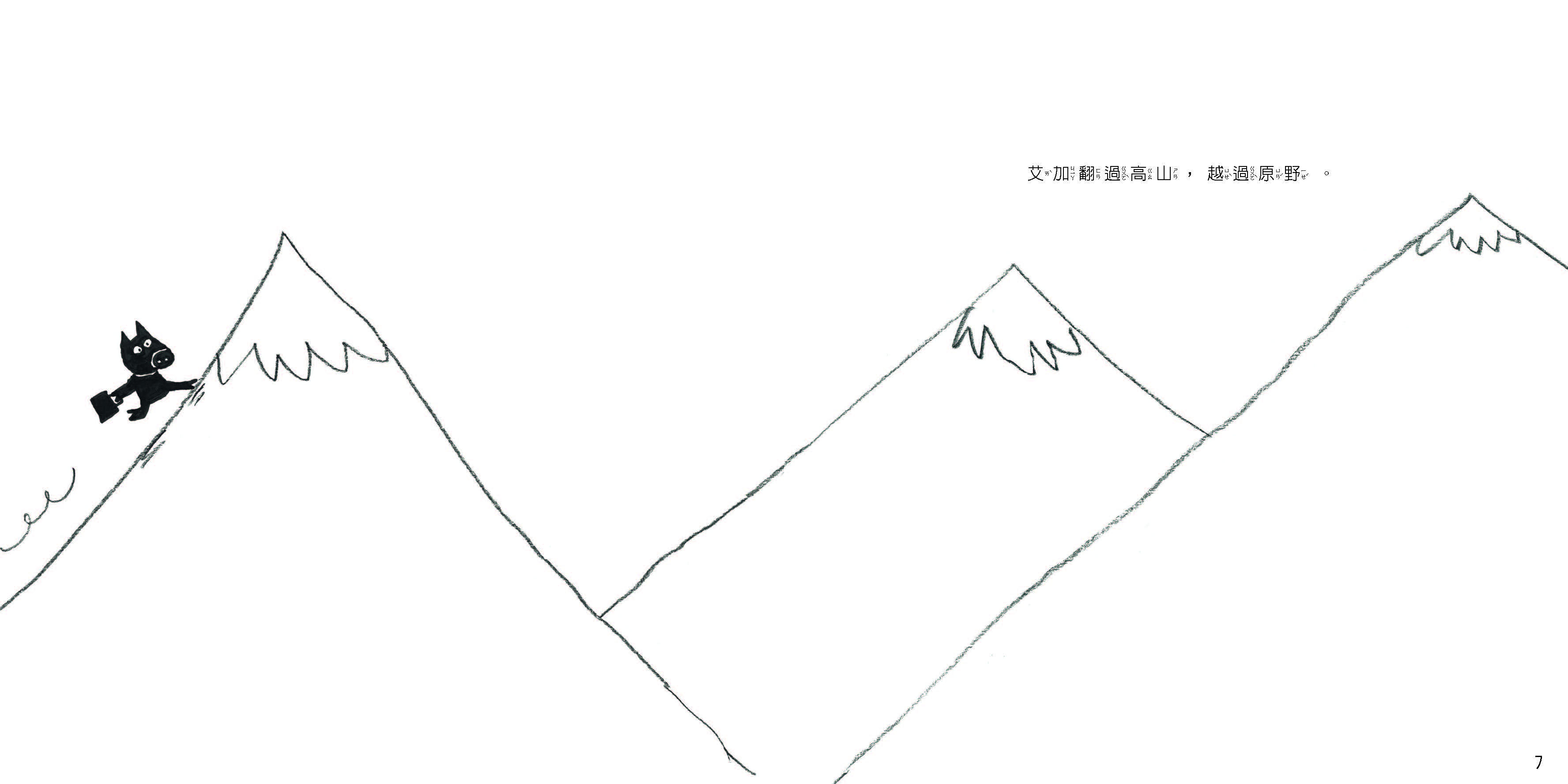 他翻過高山, 越過原野, 遇見了一群小粉紅豬……