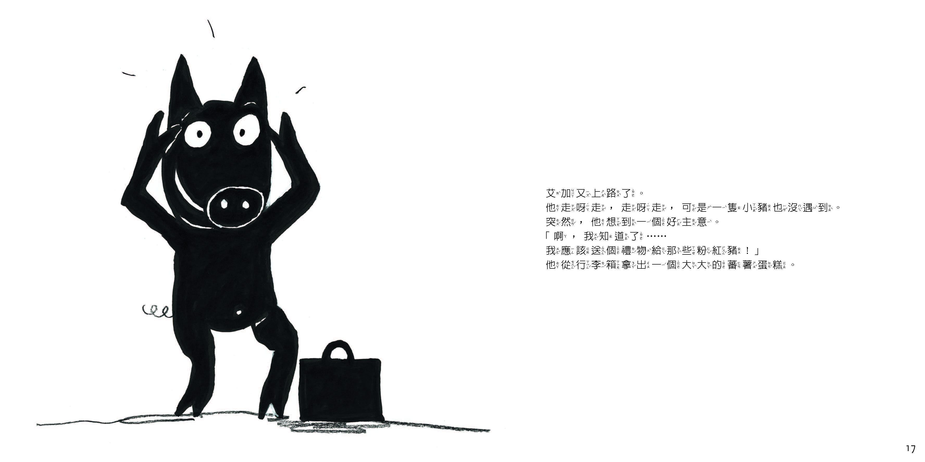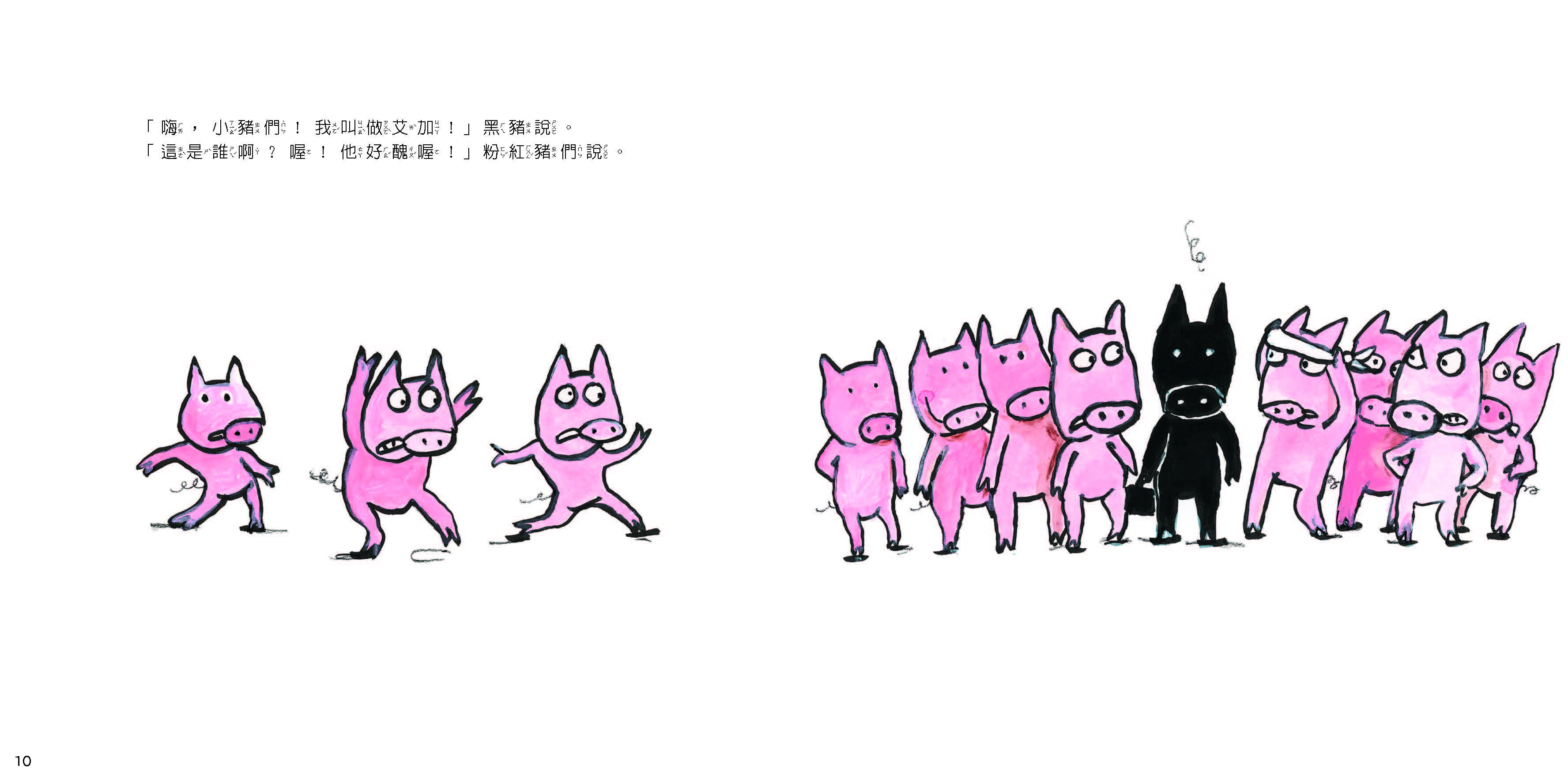 大家都是漂亮的粉紅色, 只有他是黑色,因此沒有粉紅豬願意和他玩耍。
