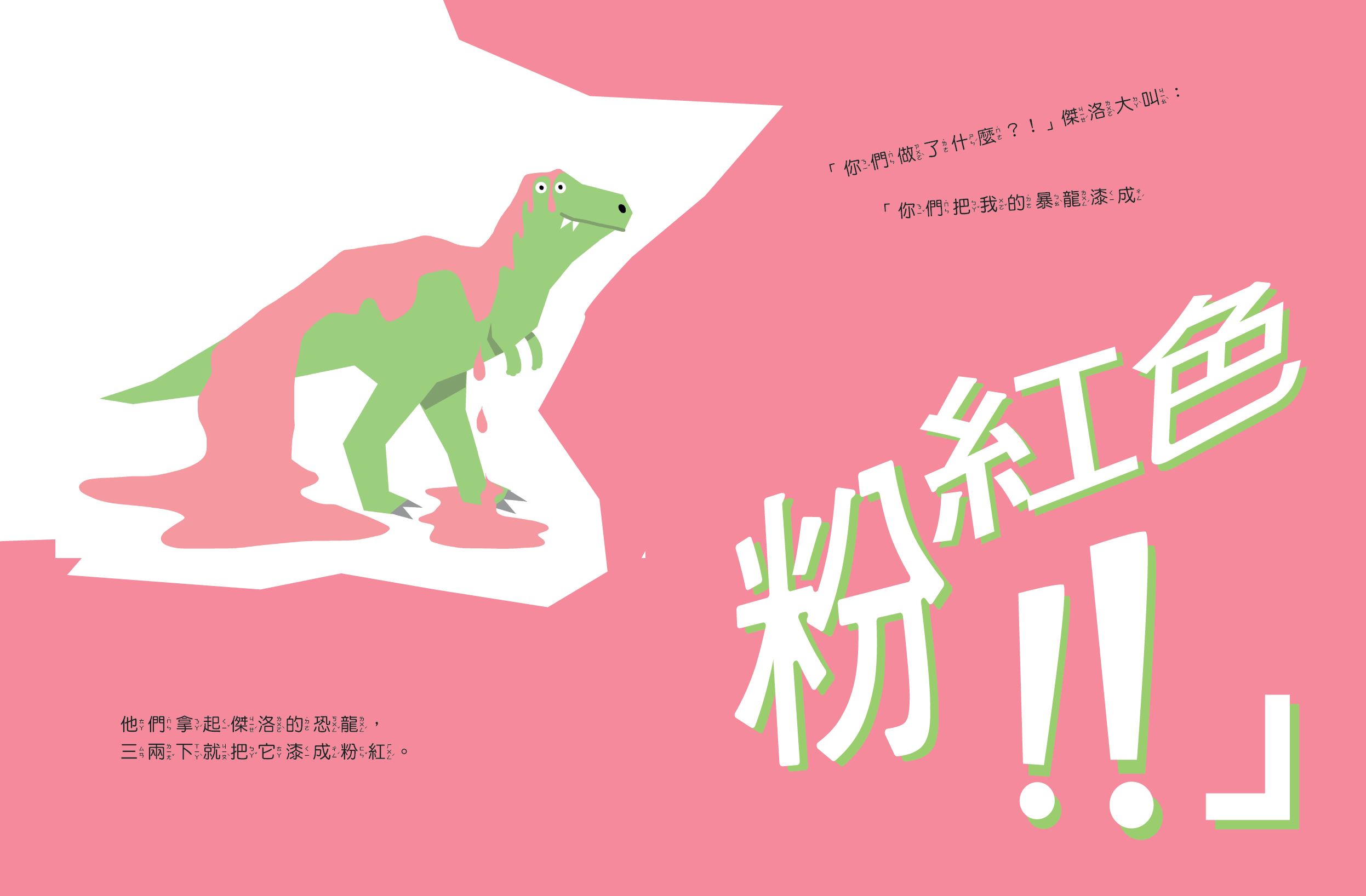 佩兒和賽巴斯汀很開心他們的行動帶來了正面的效果(讓孩子看到他們可以改變世界,很重要!),他們去玩具店買了自己喜歡的玩具,也沒忘了給傑洛買一隻恐龍。希望,有一天傑洛會明白,粉紅色的恐龍不是不可以,粉紅色的恐龍和綠色的恐龍都很好,每個人都可以玩自己想玩的玩具,不必用性別劃分。