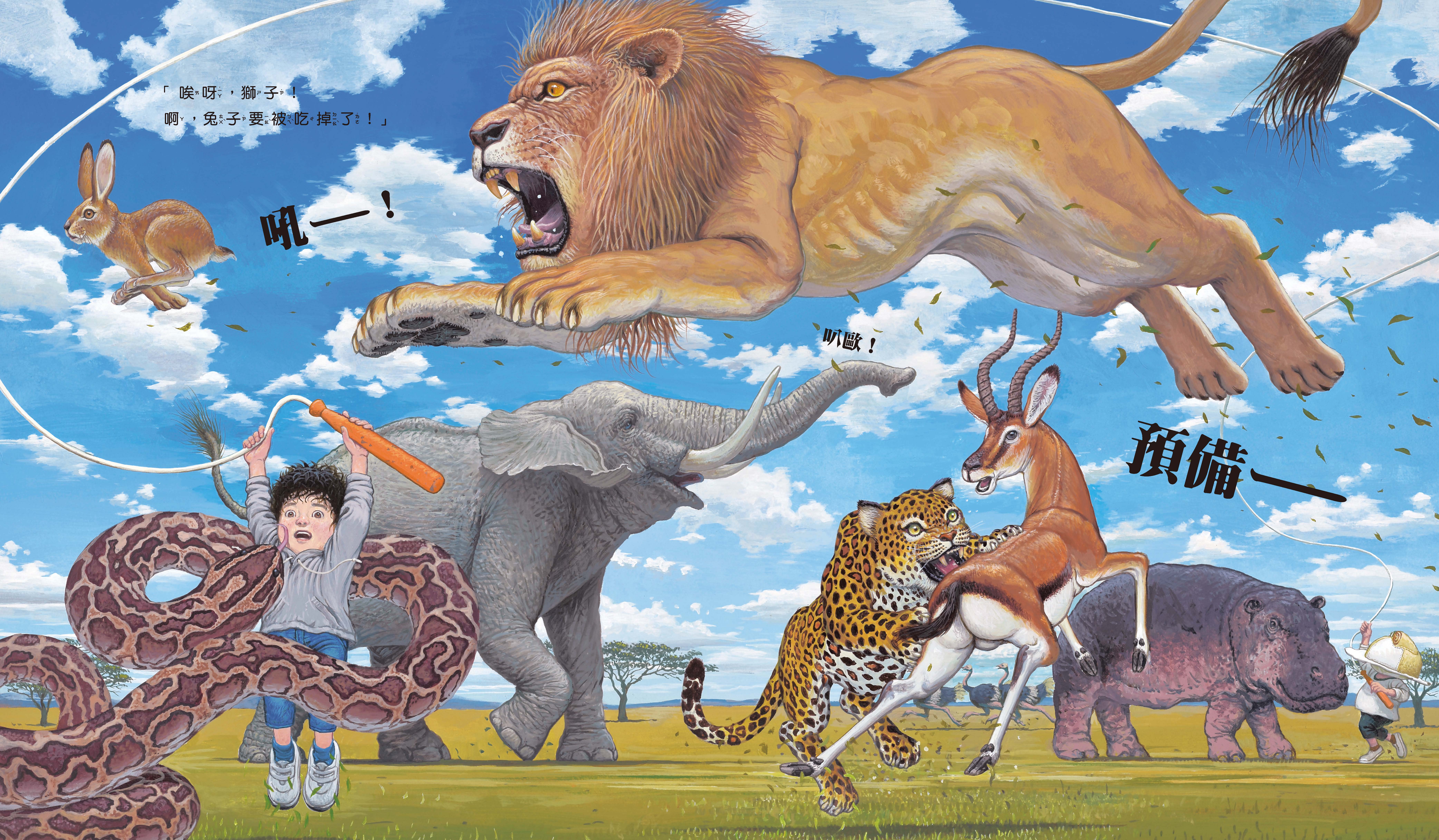 看似只是些出乎意料的東西在跳繩,其實在跳繩的過程中也幫助了他人,為故事添增了醍醐味。有些頁面還有找找書的要素在,非常有趣。最後故事以友情與成長做結尾,非常精彩。