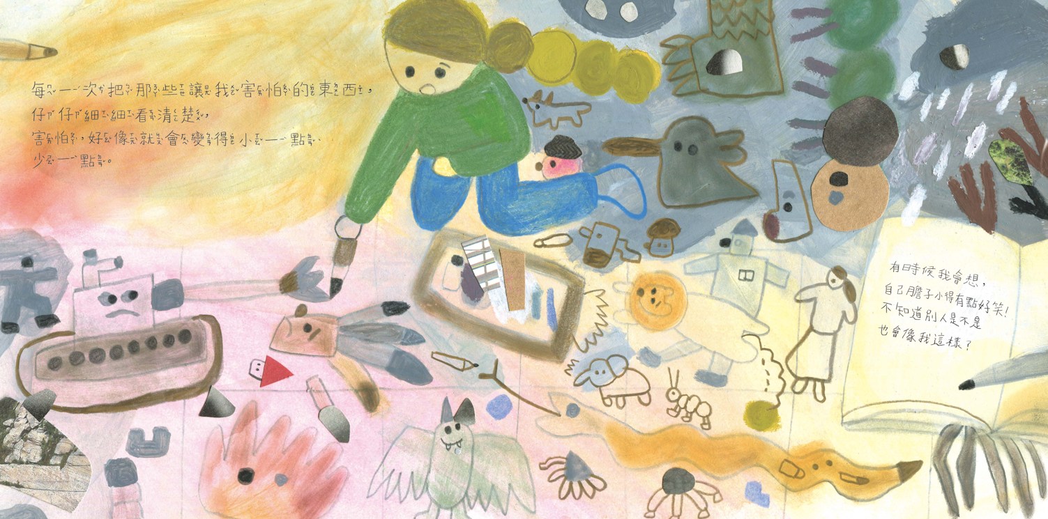 但當我把害怕的事情寫下來或畫出來,清楚看見那些東西,害怕的感覺就會變得小一點、少一點;也才發現,自己並不孤單,原來有人跟我一樣感到害怕。